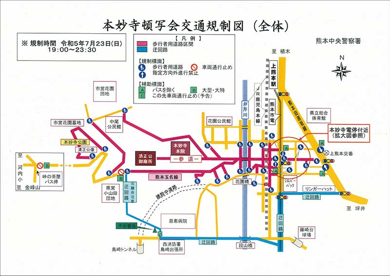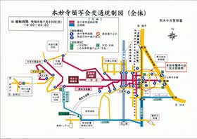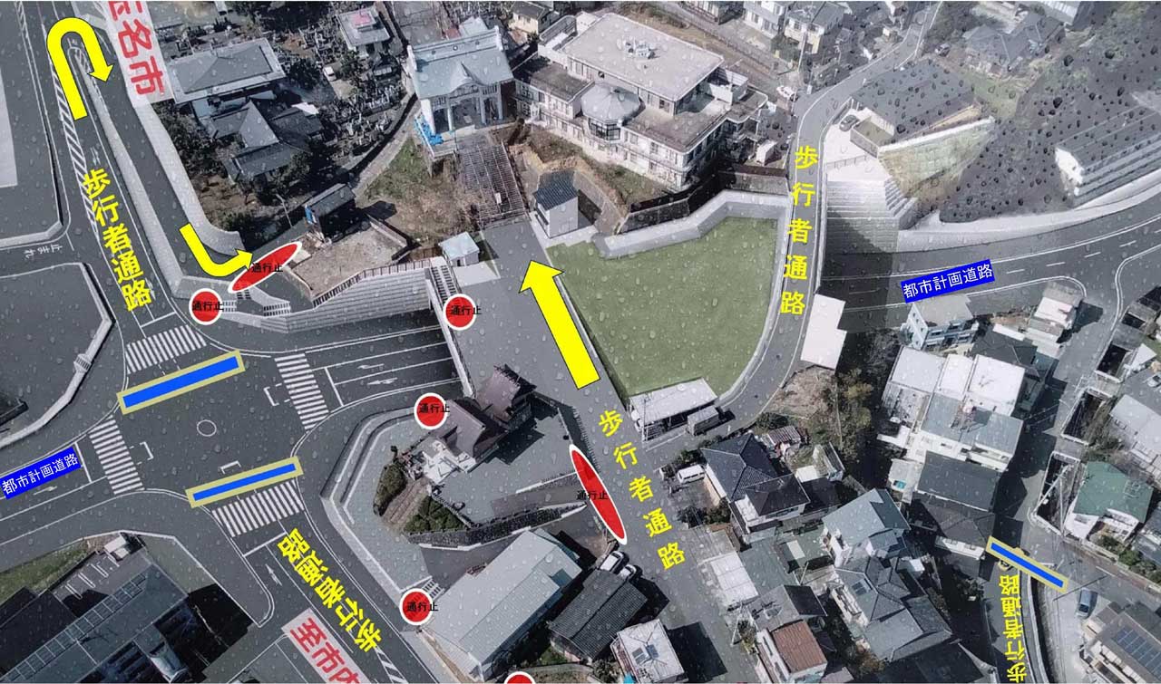 図のように交通規制が行われます。ご確認ください。