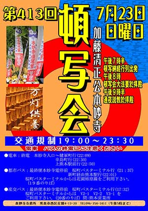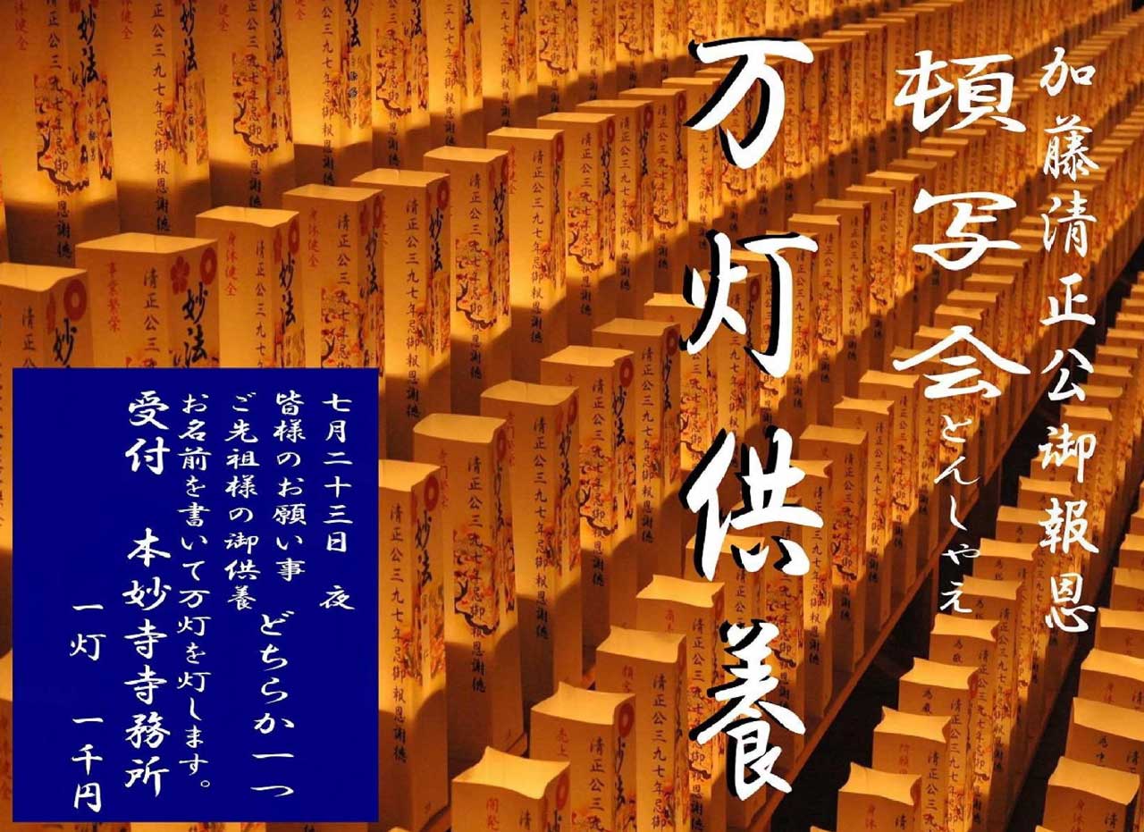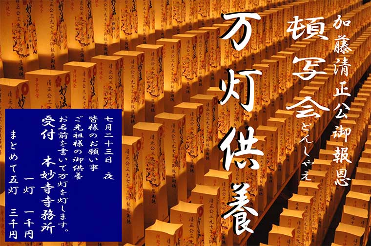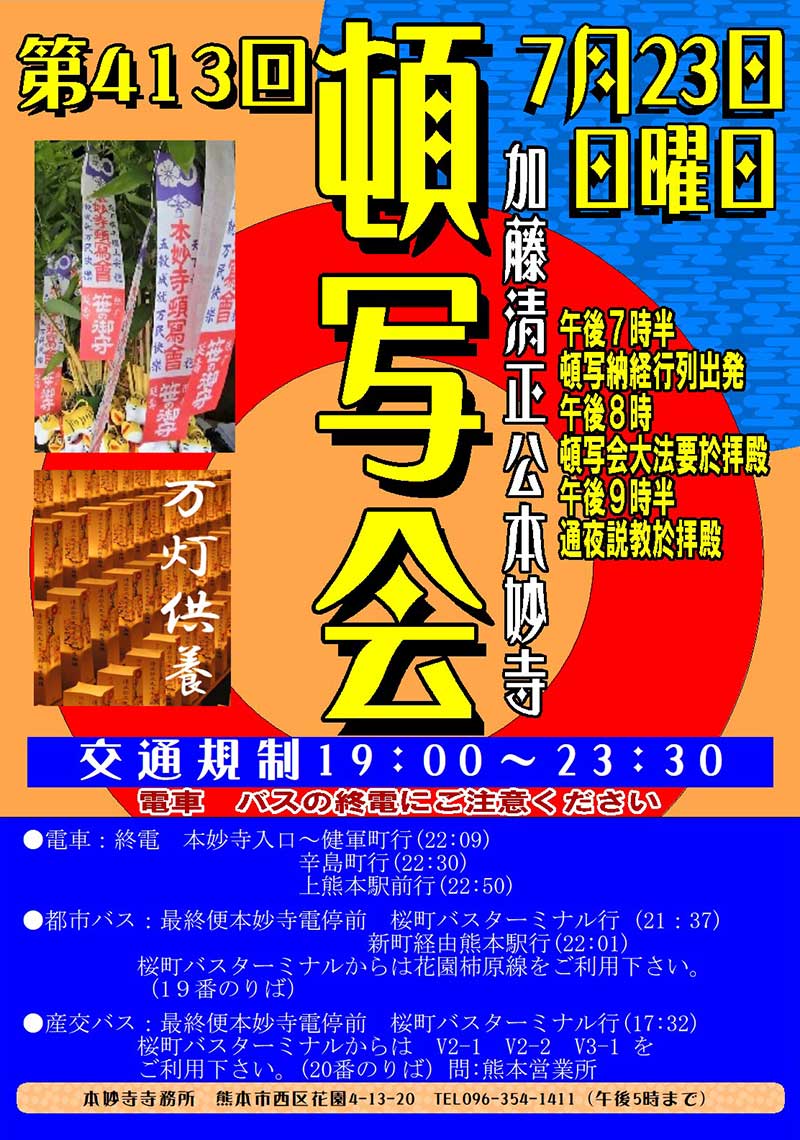 | 連絡先 | 〒860-0072 熊本市西区花園4-13-1 本妙寺寺務所 ☎096-354-1411 祈願の事前受付もいたします。 |
