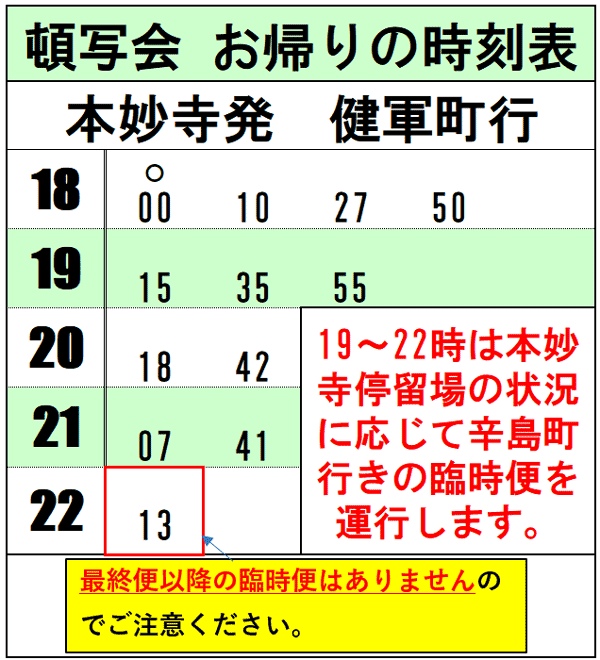 名の起こりは本妙寺第3代高麗日遥上人が清正公の菩提を弔う為1周忌に法華経を書写したのが始まりで、3回忌に山内の僧侶が加わり行ったところ7月23日の一夜にして写経が出来たところから頓(すみやか)に法華経(69,384文字)を写経した法会ということに由来している。